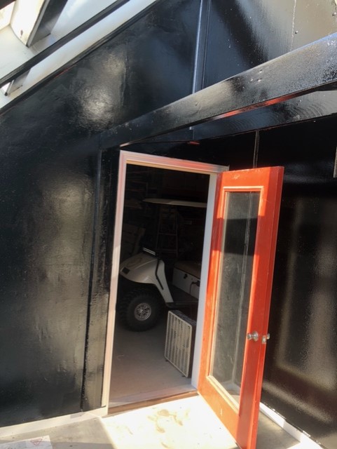 Interior Work Inside, I used a thin layer of spray foam to seal air gaps, followed by batt insulation. I did the same in the kiln. After researching proper kiln coatings, I used an aluminum‑based primer followed by Kiln Seal, a thick rubberized coating that has held up extremely well even at 140°F.