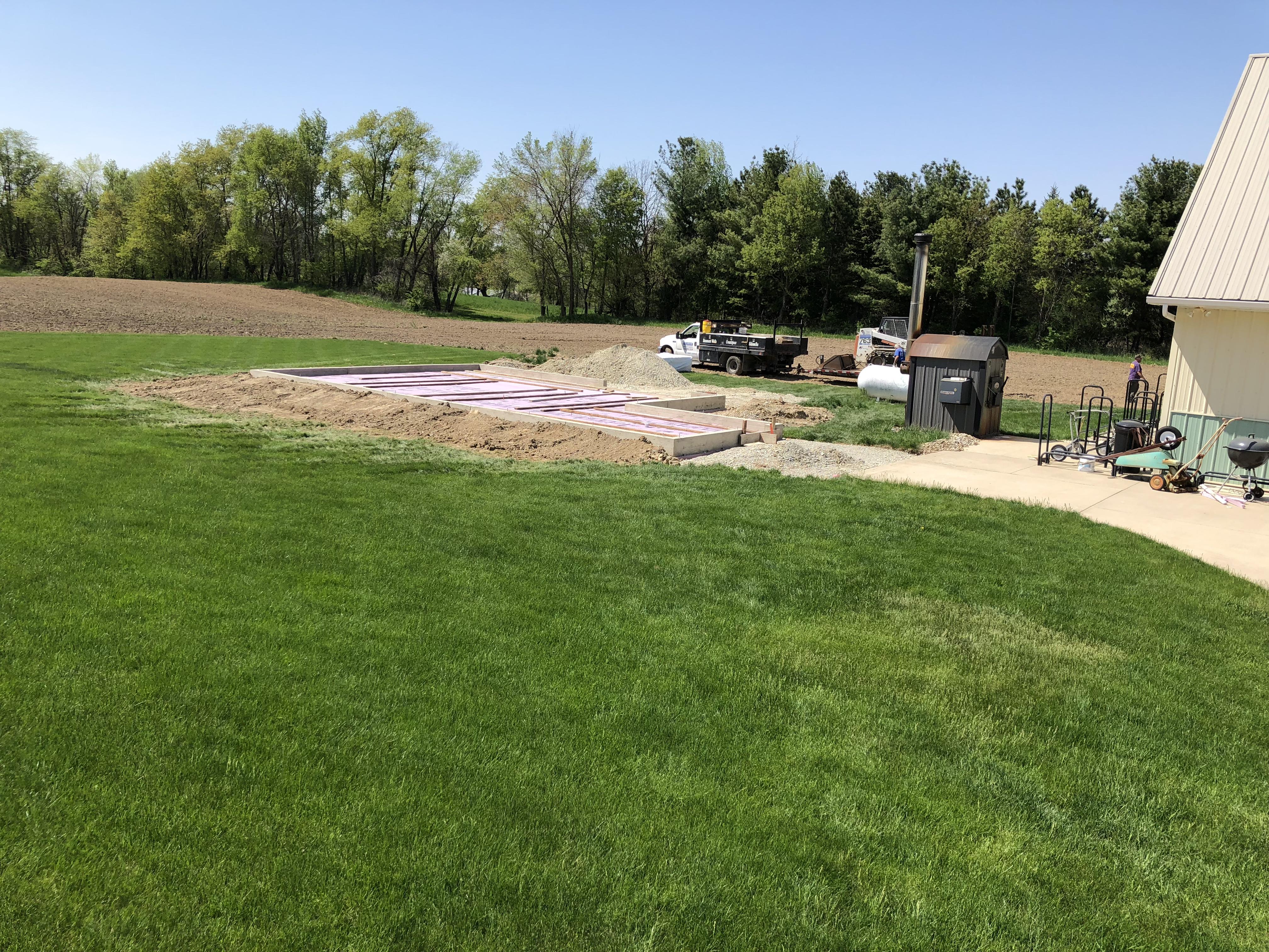 A Soggy Start Spring of 2008 was unusually wet, and I was trying to get a solar kiln built. Once the weather finally broke in May, we began ground preparation and dug the foundation footers. Soon after, the concrete slab was poured for a 28×24 storage building and an attached 12×12 solar kiln.
