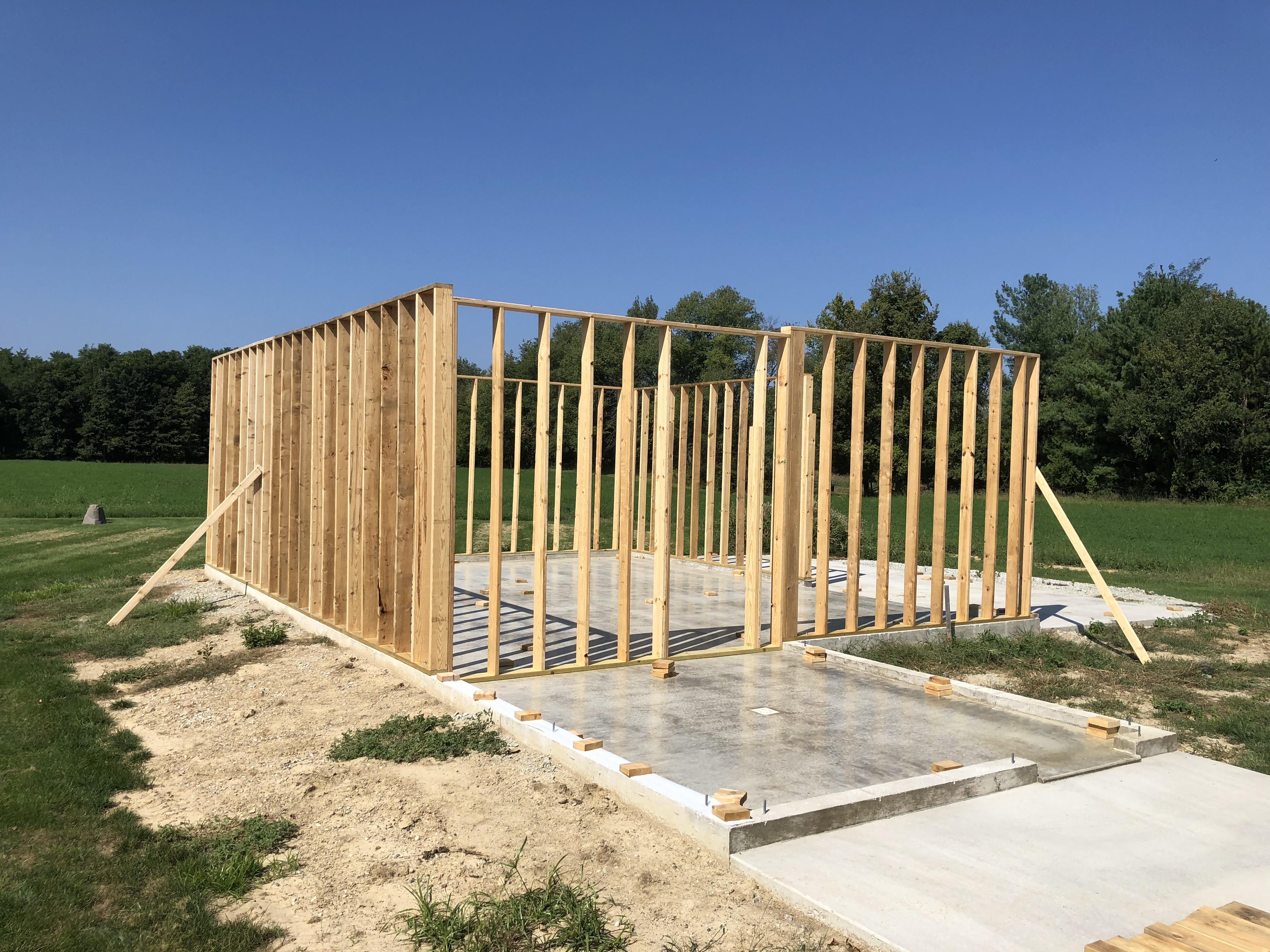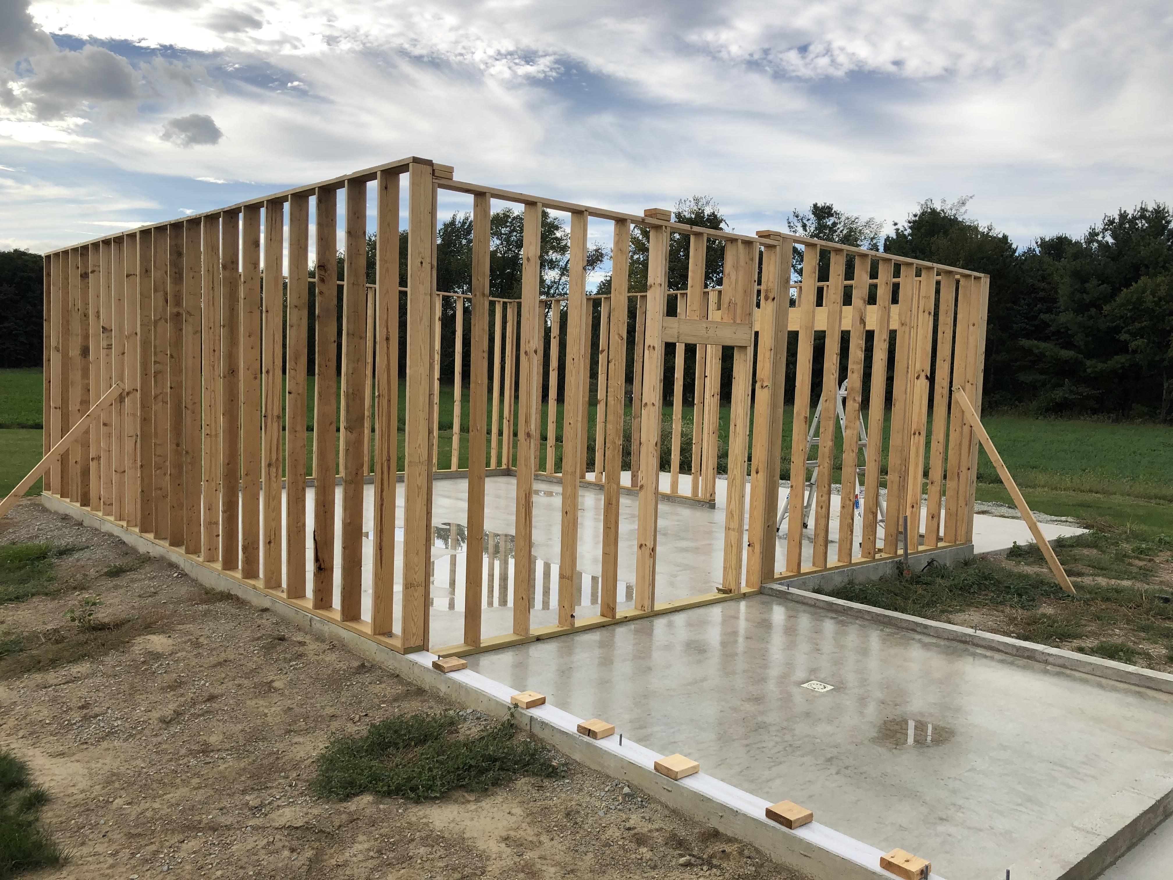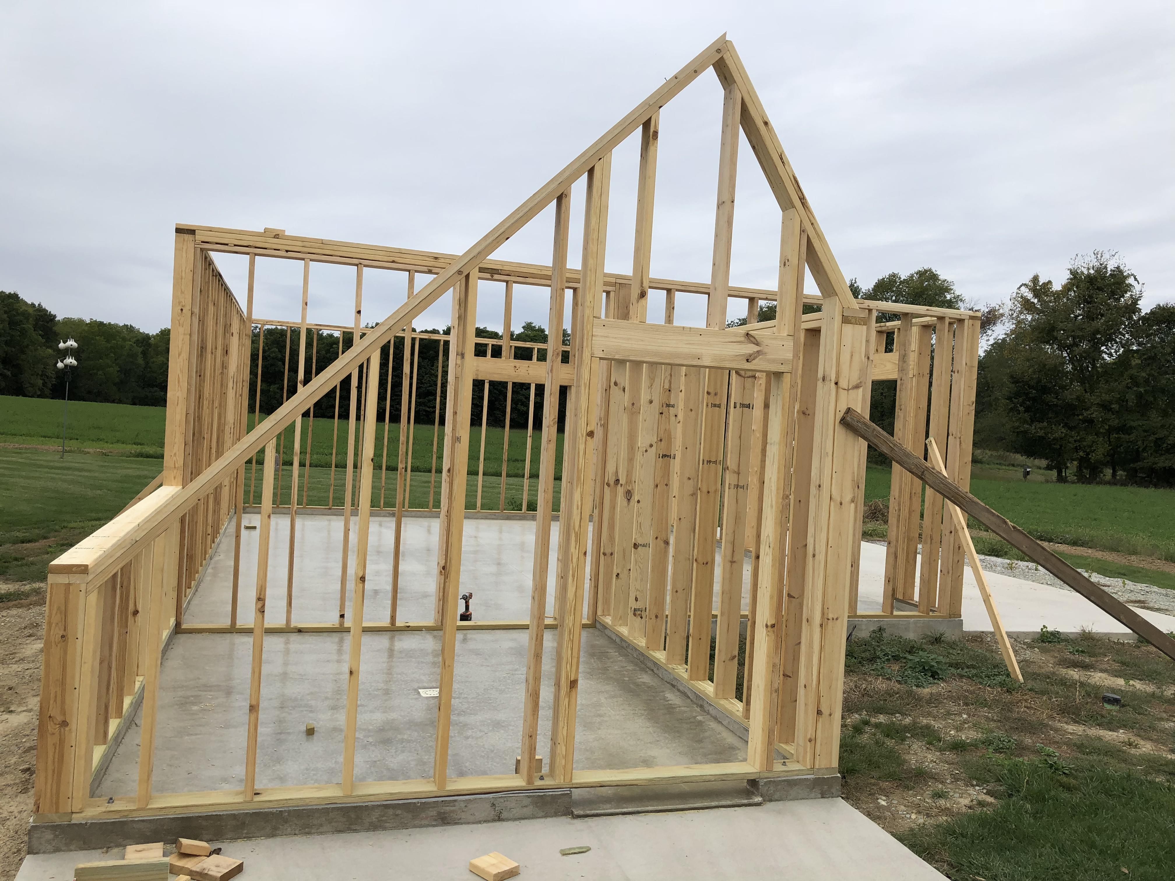 Building Alone I originally had someone lined up to help with construction, but he backed out right after the concrete was finished. I couldn’t stand to see the slab sitting empty, so I decided to start the build myself. I had already drawn the entire structure in AutoCAD, so I knew exactly what materials I needed. I ordered the lumber, framed the walls, and got them erected on my own.
