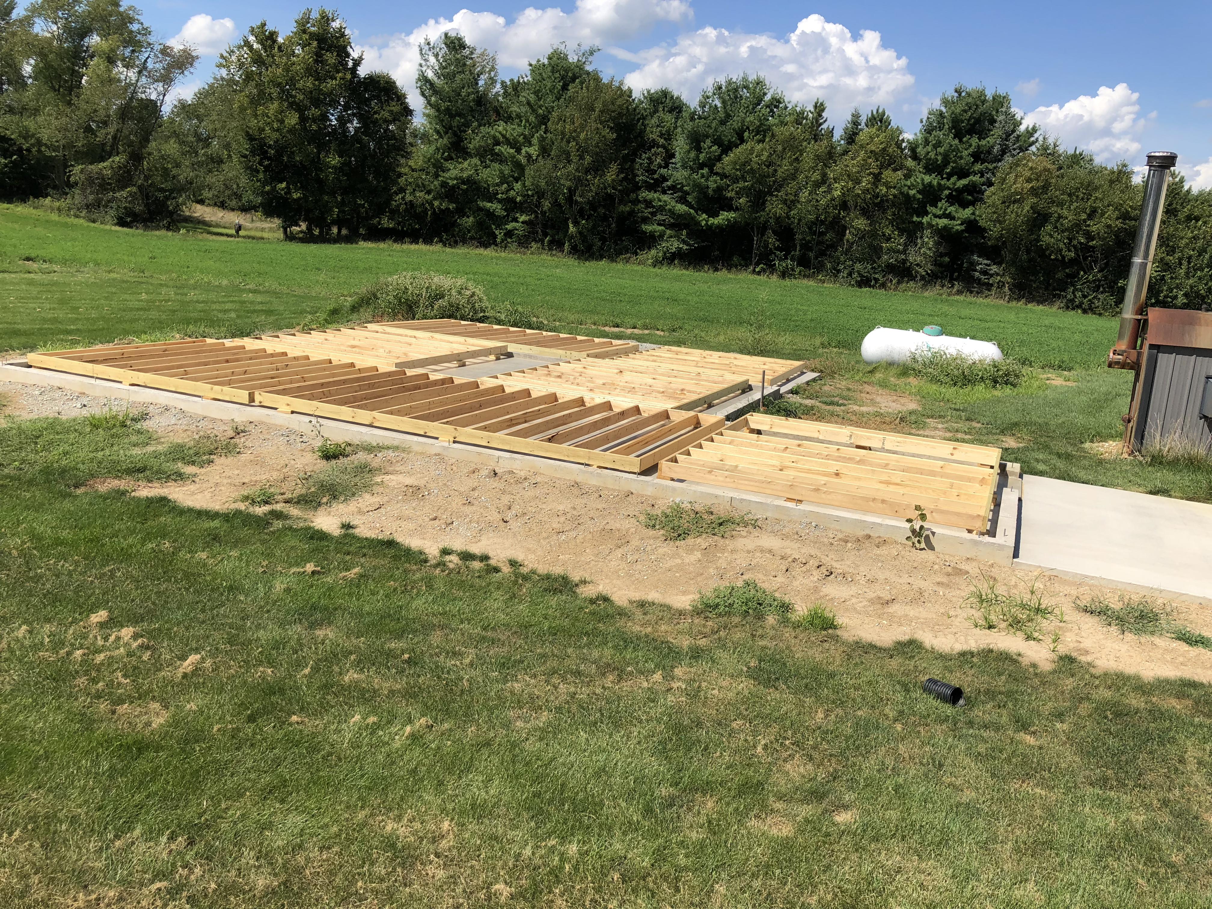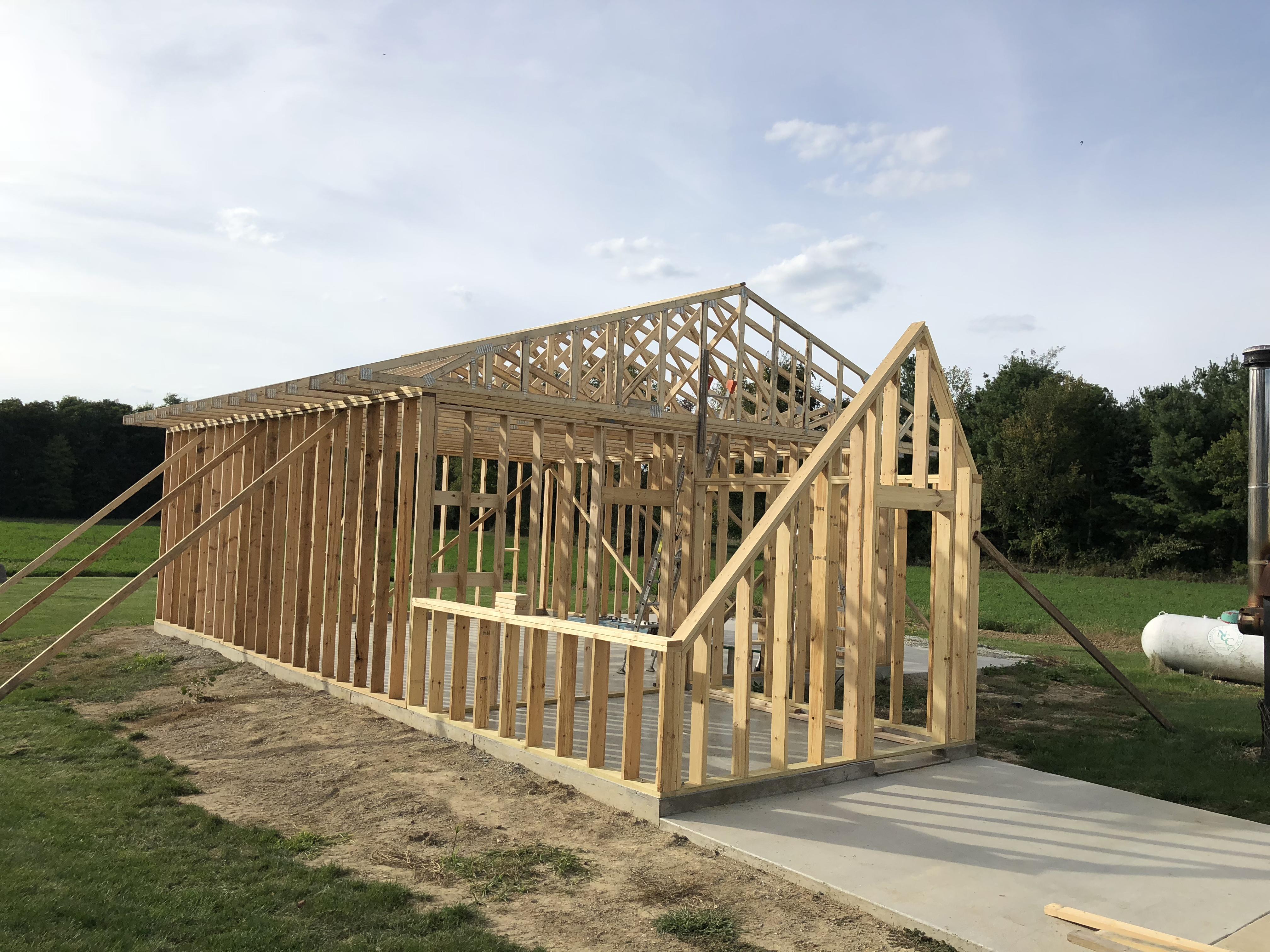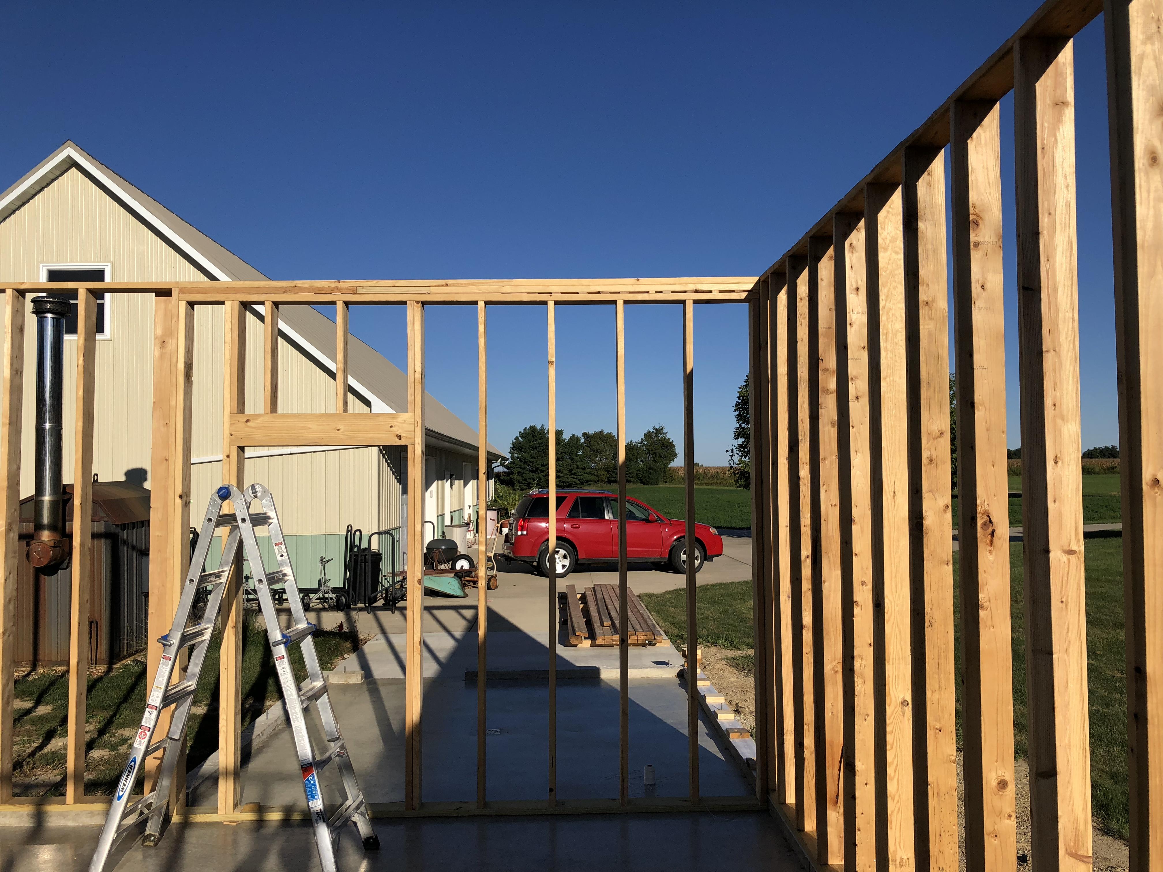 Building Alone I originally had someone lined up to help with construction, but he backed out right after the concrete was finished. I couldn’t stand to see the slab sitting empty, so I decided to start the build myself. I had already drawn the entire structure in AutoCAD, so I knew exactly what materials I needed. I ordered the lumber, framed the walls, and got them erected on my own.