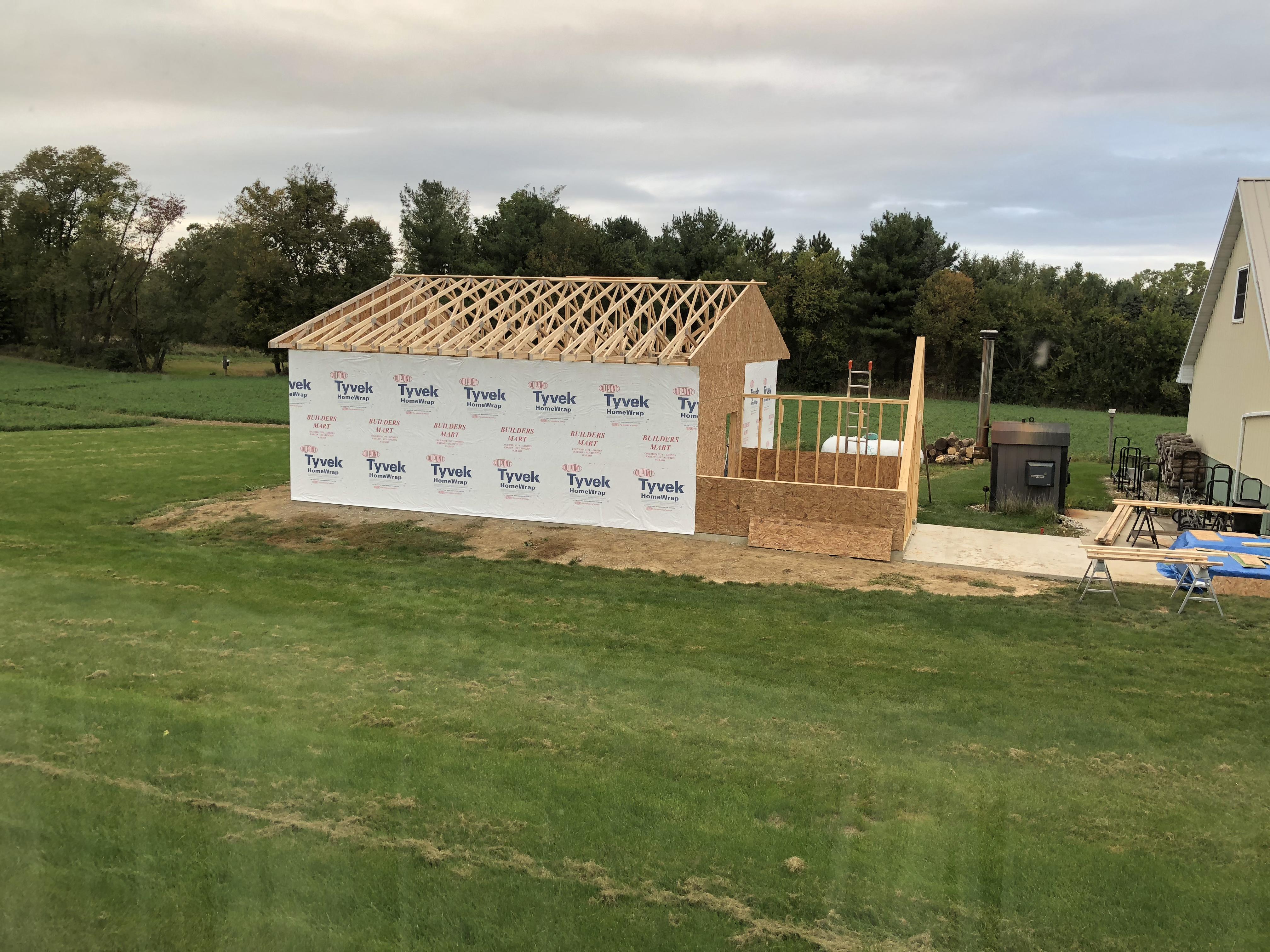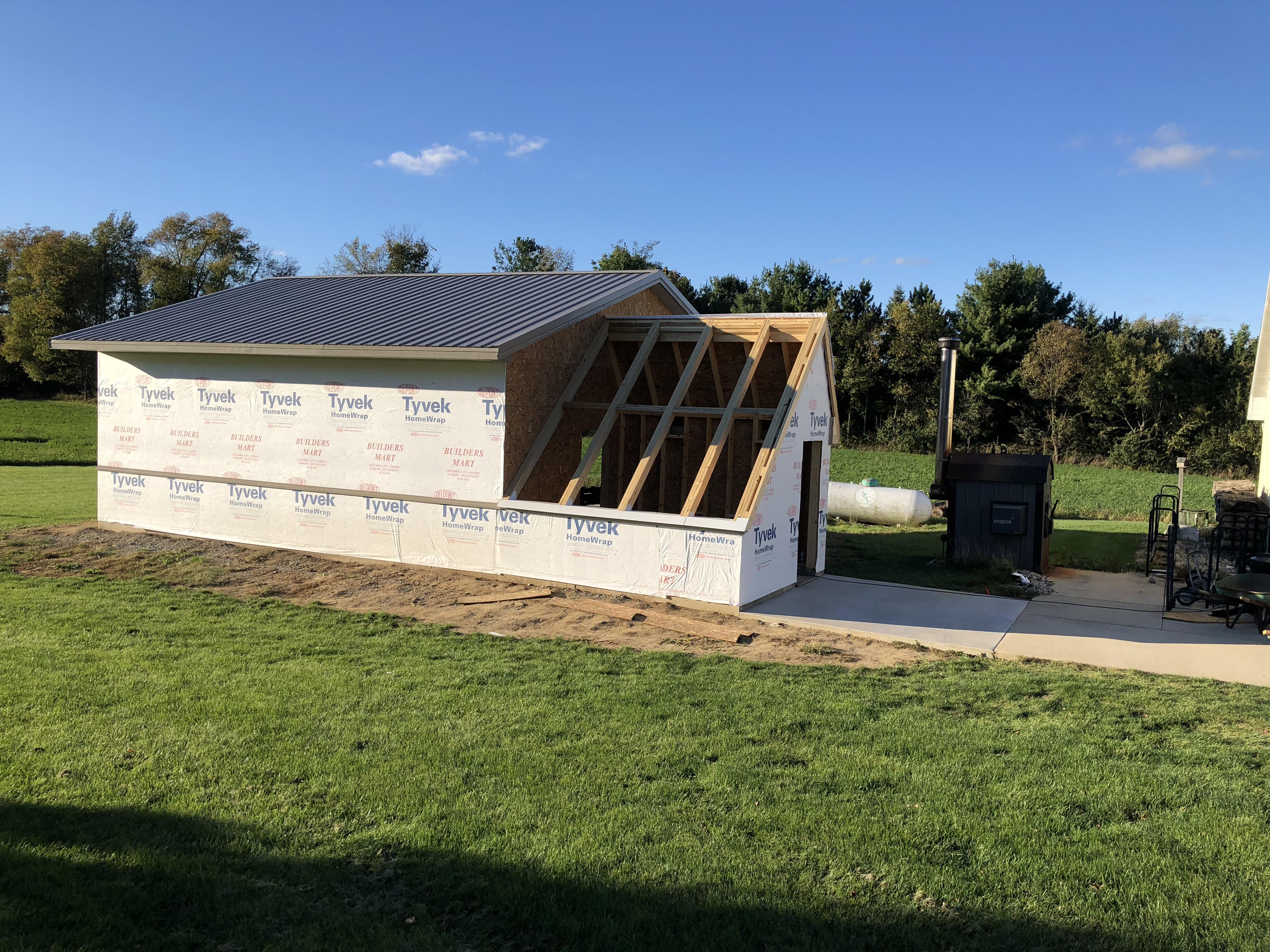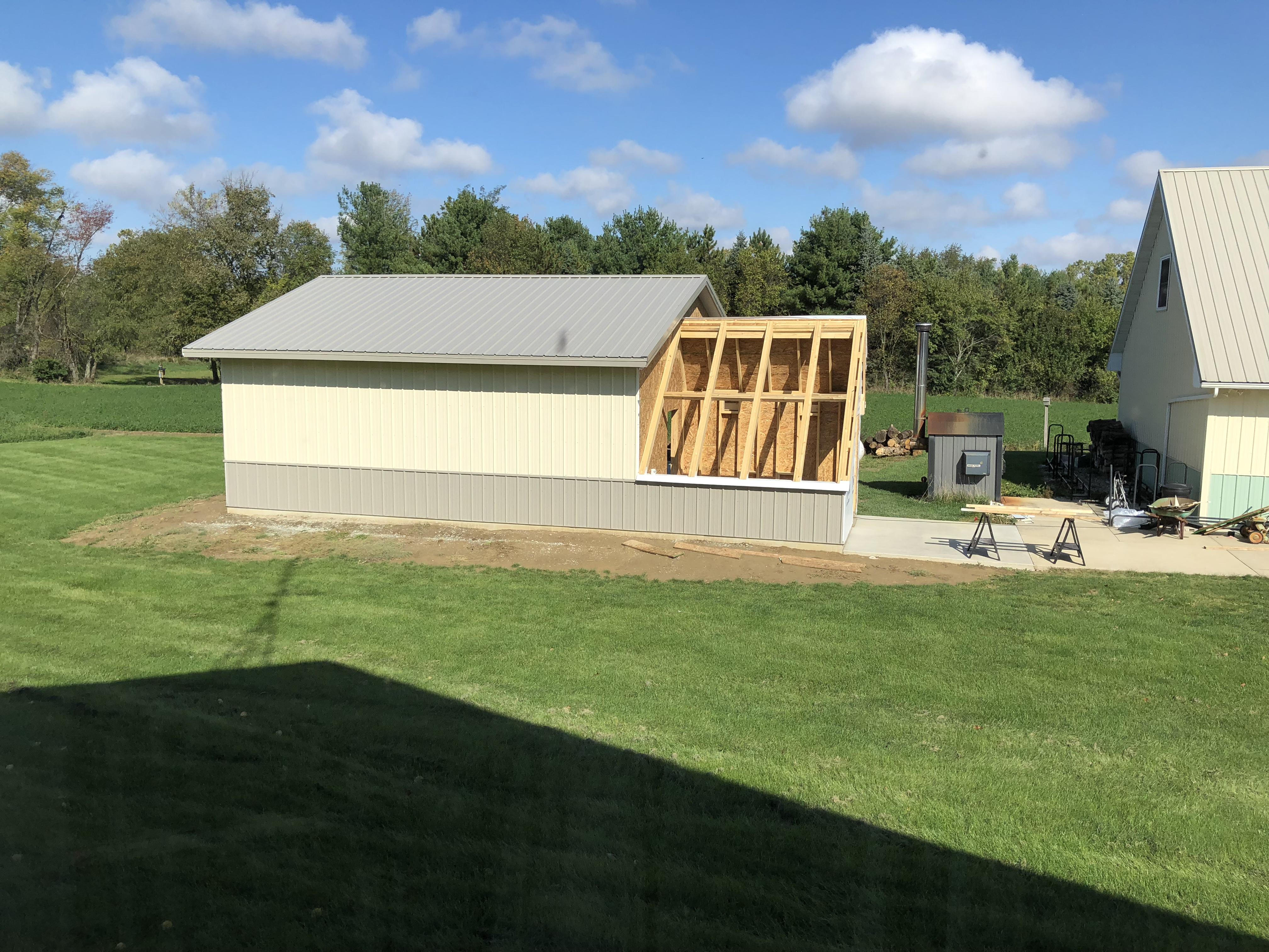 Help Arrives Around that time, I learned my neighbor was a contractor — and he had time to help. He ordered the trusses, metal roofing, and siding. Since the project was practically in his backyard, it worked out well for both of us. They did excellent work, and together we got the exterior completed.